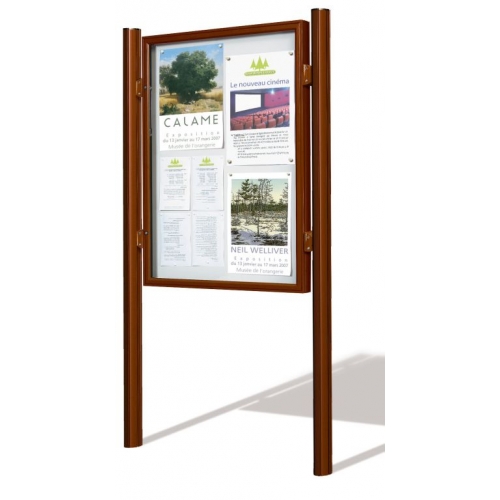Vznešená a nadčasová vitrína, jejíž větší výběr formátů a příslušenství umožňuje všechny kombinace. Provedení jednokřídlé nebo dvoukřídlé u některých rozměrů provedení výklopné, zvedací dvířka s písty. Hloubka 75 mm. Od 8 do 30 A4. Jednostranná. Hliníkový rám stříbrný elox nebo v barvě. Vitráž Odolné plexisklo® nebo bezpečnostní sklo o tloušťce 4 mm. Vyměnitelná křídlová dvířka, dvoukřídlá dvířka nebo zvedací dvířka s písty. Těsnicí spoje z elastomeru.Bezpečnostní zámek se 2 klíči (2 zámky na křídlových dvířkách o výšce 1 350 mm a na zvedacích dvířkách).Upevnění na zeď nebo na sloupky. Podklad z žárově zinkovaného plechu lakovaného bíle. Zádní část barvená světle šedě (RAL9002).Barevné provedení: RAL 3004 bordó, RAL 6005 zelená, RAL 5010 modrá, RAL 8017 hnědá, RAL 9005 černá.